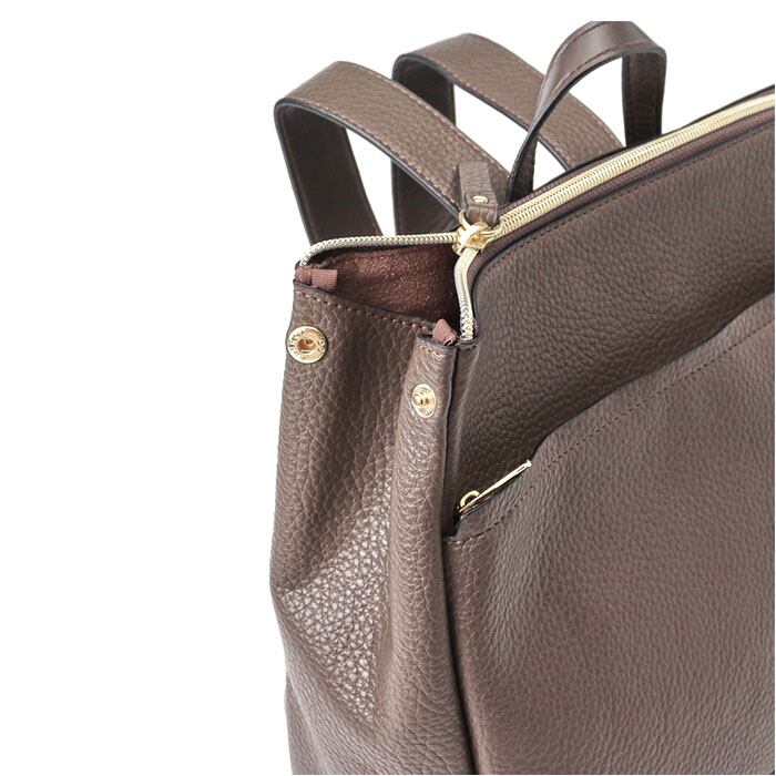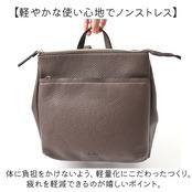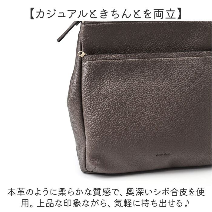 ・本革のように柔らかな質感で、奥深いシボ合皮を使用。上品な印象ながら、気軽に持ち出せる♪