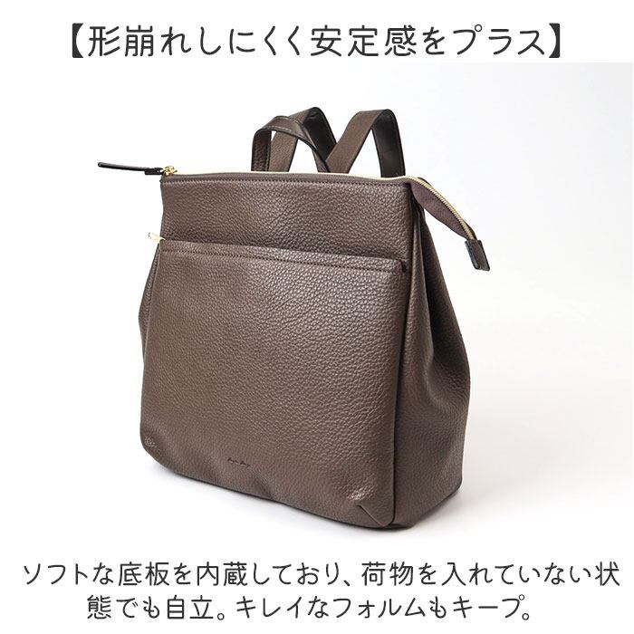 ・ソフトな底板を内蔵しており、荷物を入れていない状態でも自立。キレイなフォルムもキープ。