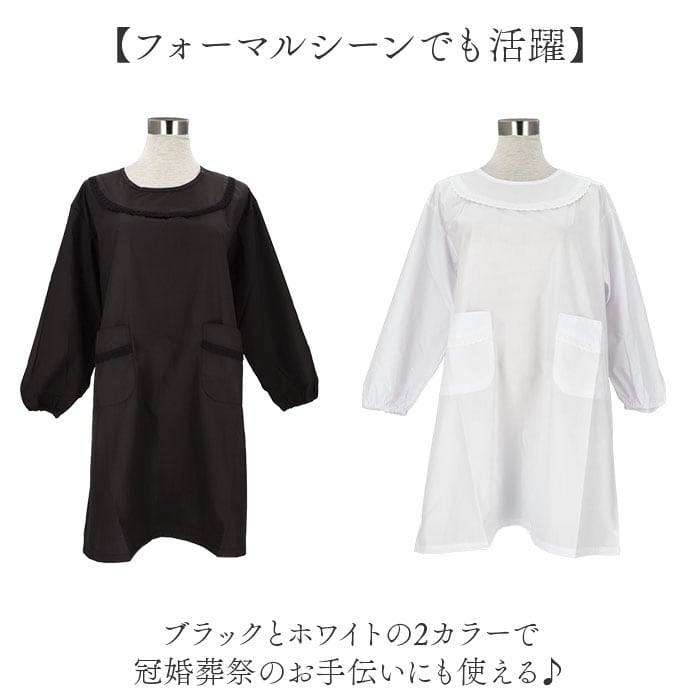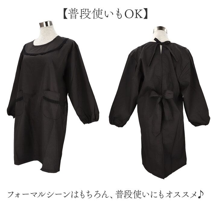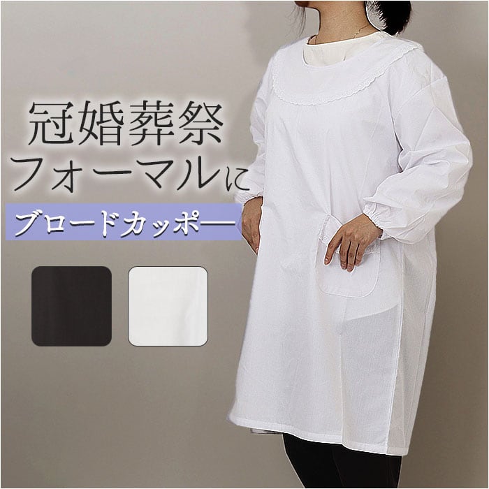 冠婚葬祭 エプロン 通販 割烹着 フォーマルエプロン 冠婚葬祭エプロン かっぽう着 ロング丈 ブロードエプロン フォーマル シンプル レディース 女性 大人 洋装 和装 長袖 無地 弔事用エプロン おしゃれ 葬儀 お通夜 葬式 セレモニー