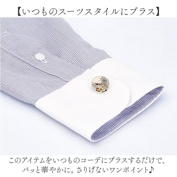 ・いつものスーツスタイルをワンランクアップ☆「カフスボタン 時計ムーブメント」が登場。