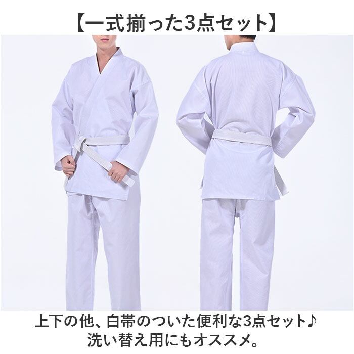 ・上下の他、白帯のついた便利な3点セット♪洗い替え用にもオススメ。