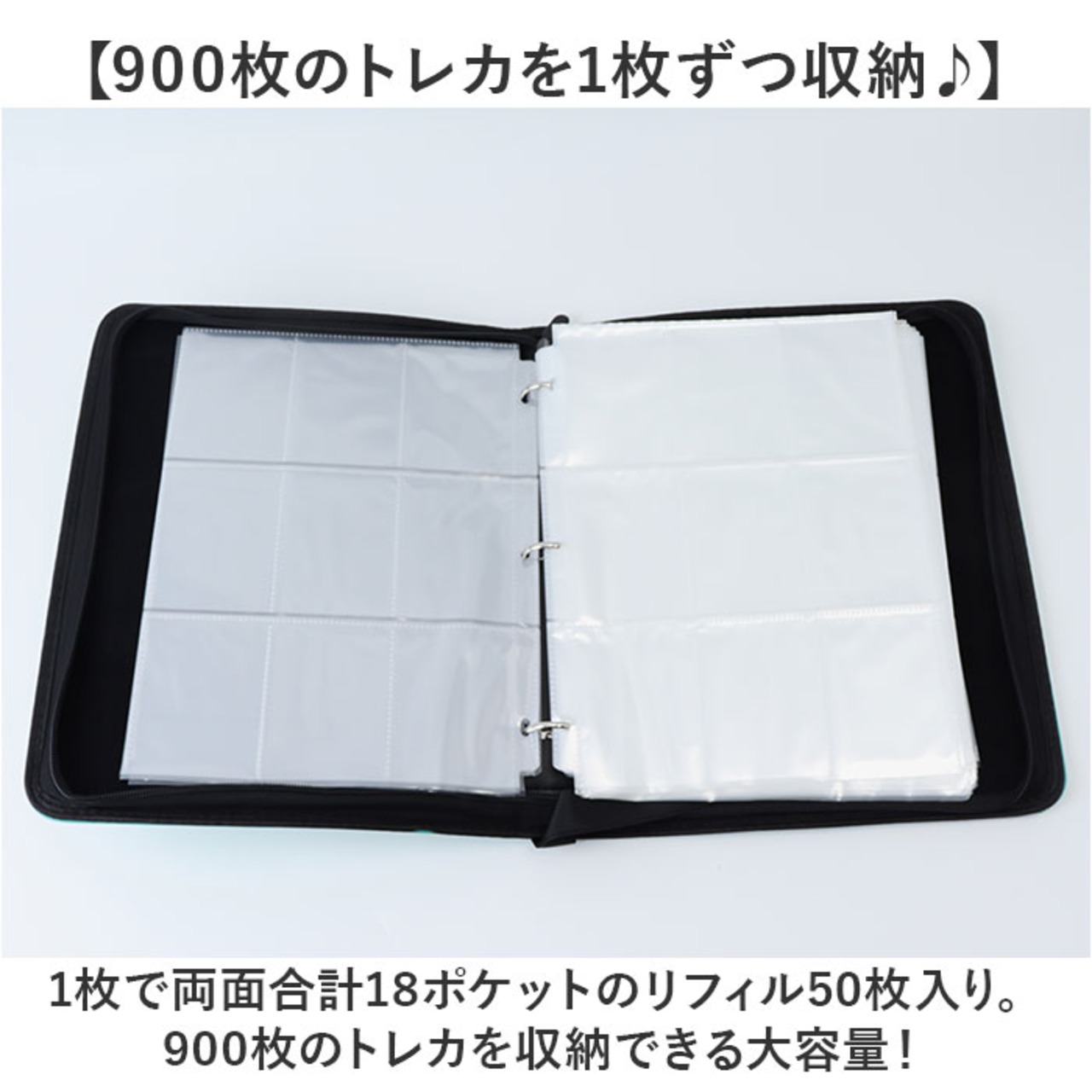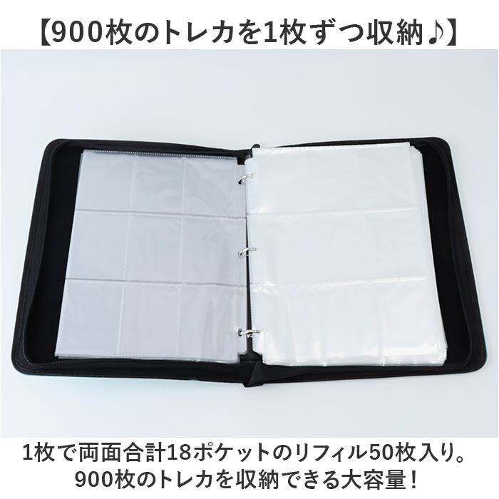 ・1枚で両面合計18ポケットのリフィル50枚入り。900枚のトレカを収納できる大容量!