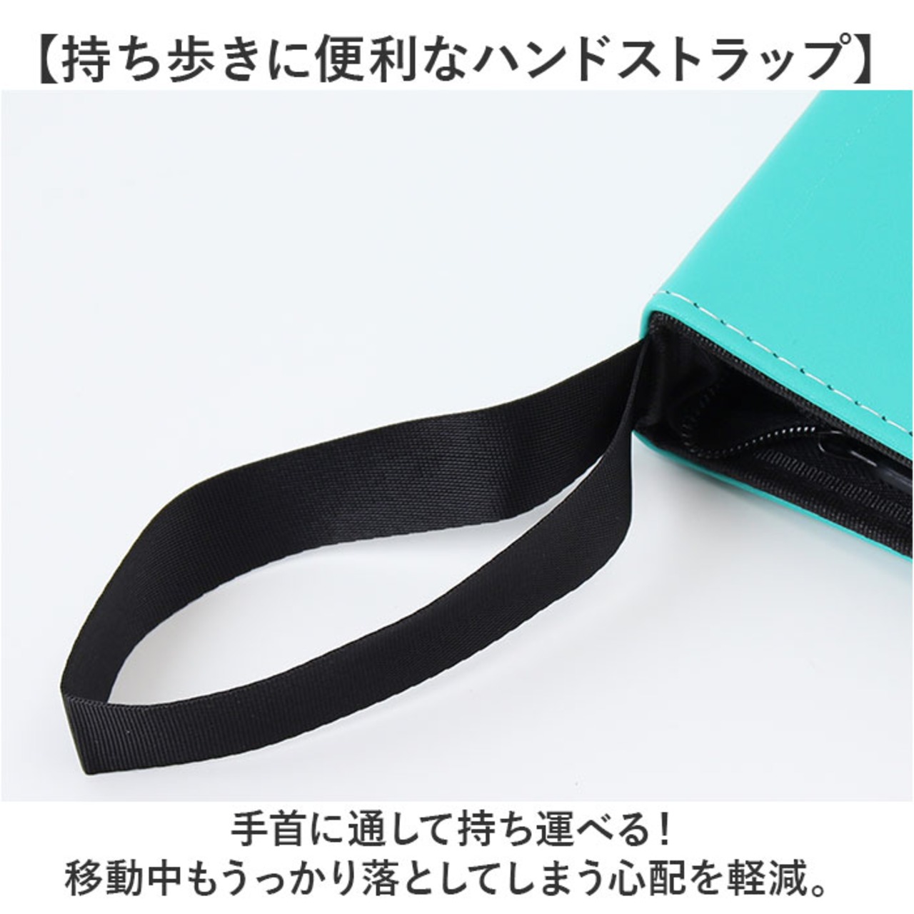 ・手首に通して持ち運べる!移動中もうっかり落としてしまう心配を軽減。