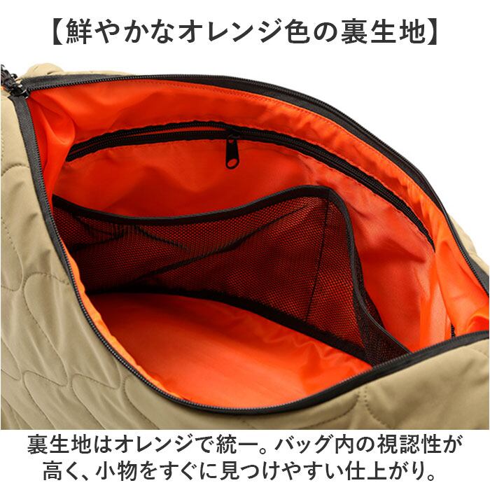 ・裏生地はオレンジで統一。バッグ内の視認性が高く、小物をすぐに見つけやすい仕上がり。