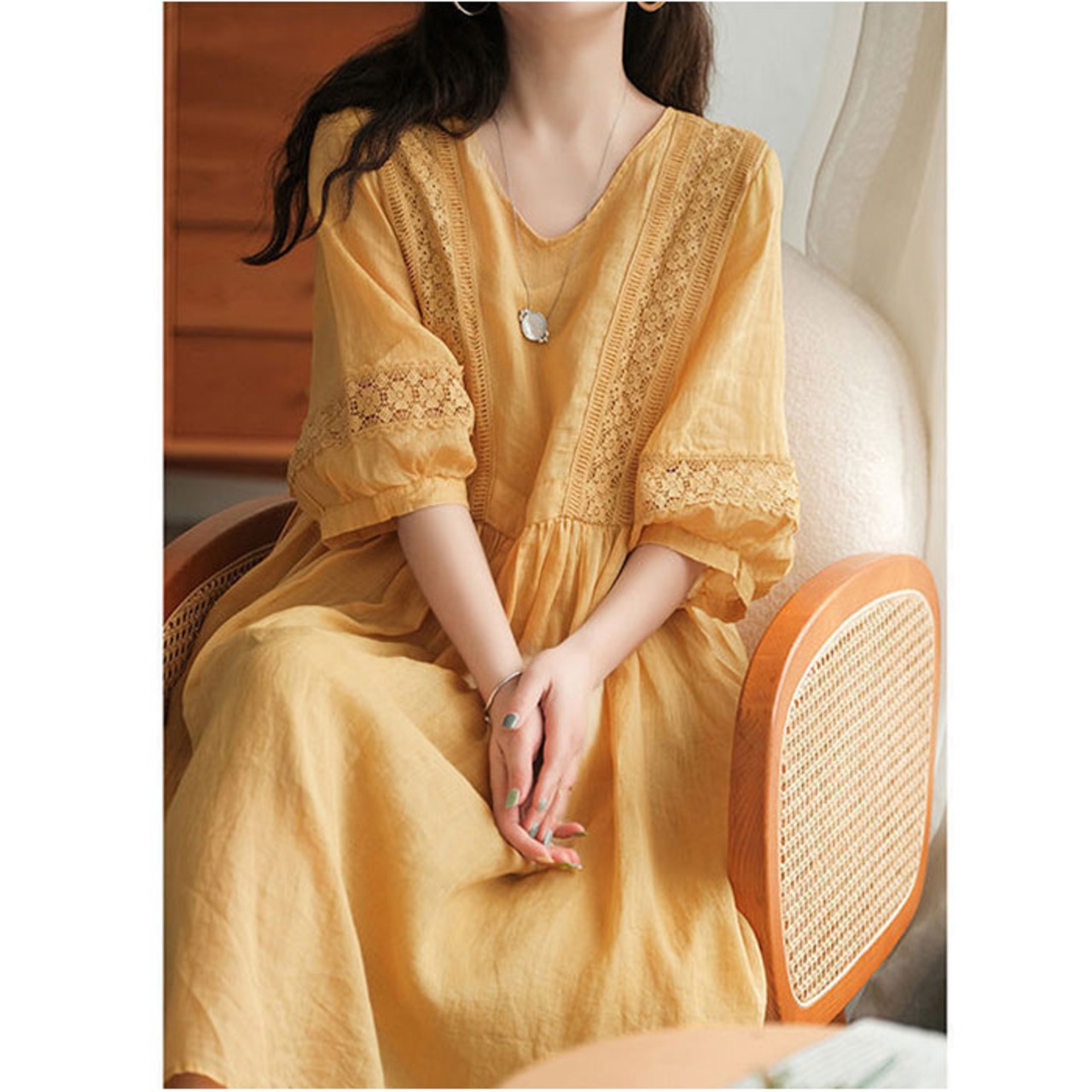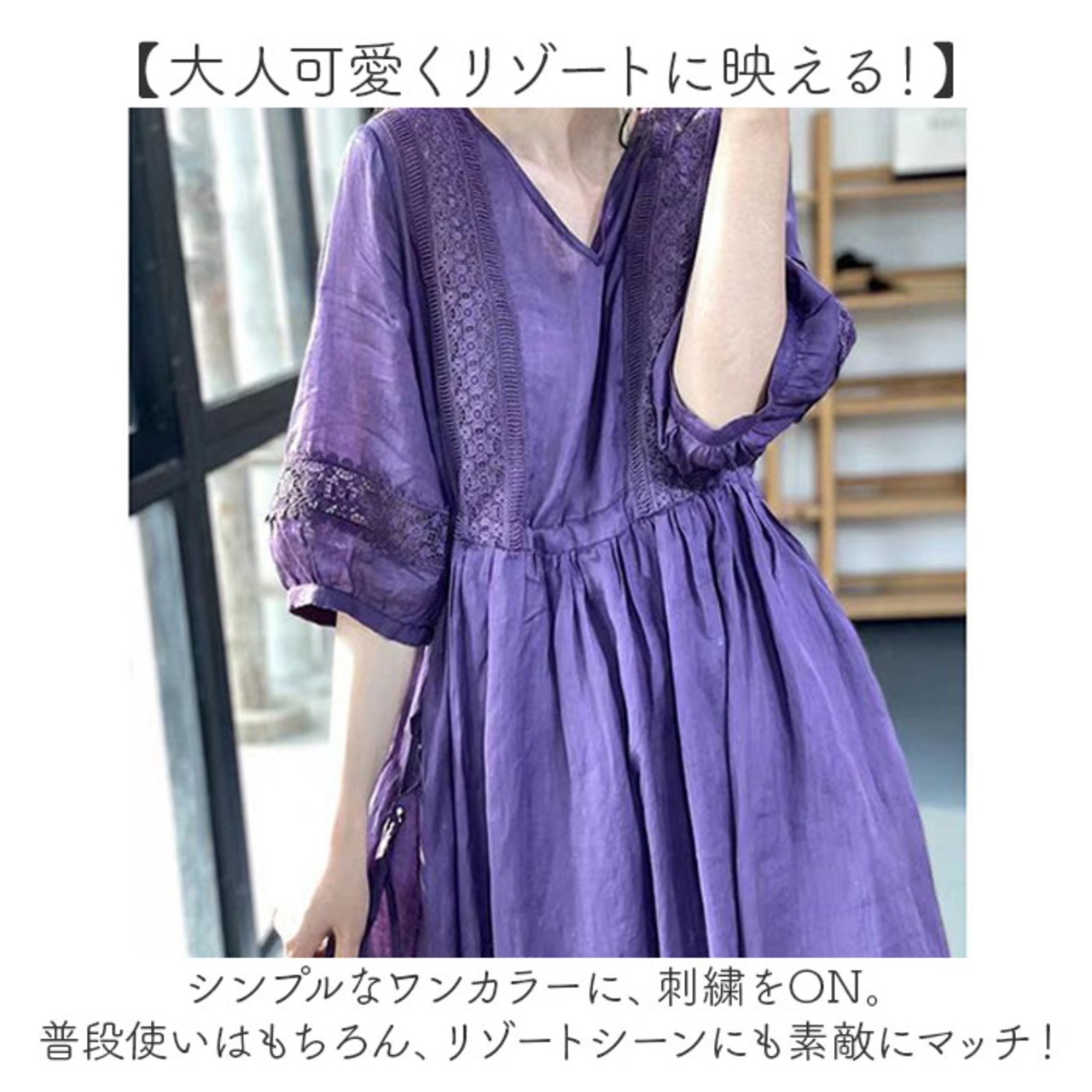 (※)裏地が付いていないため、お手持ちのペチコートなどを着用してください。