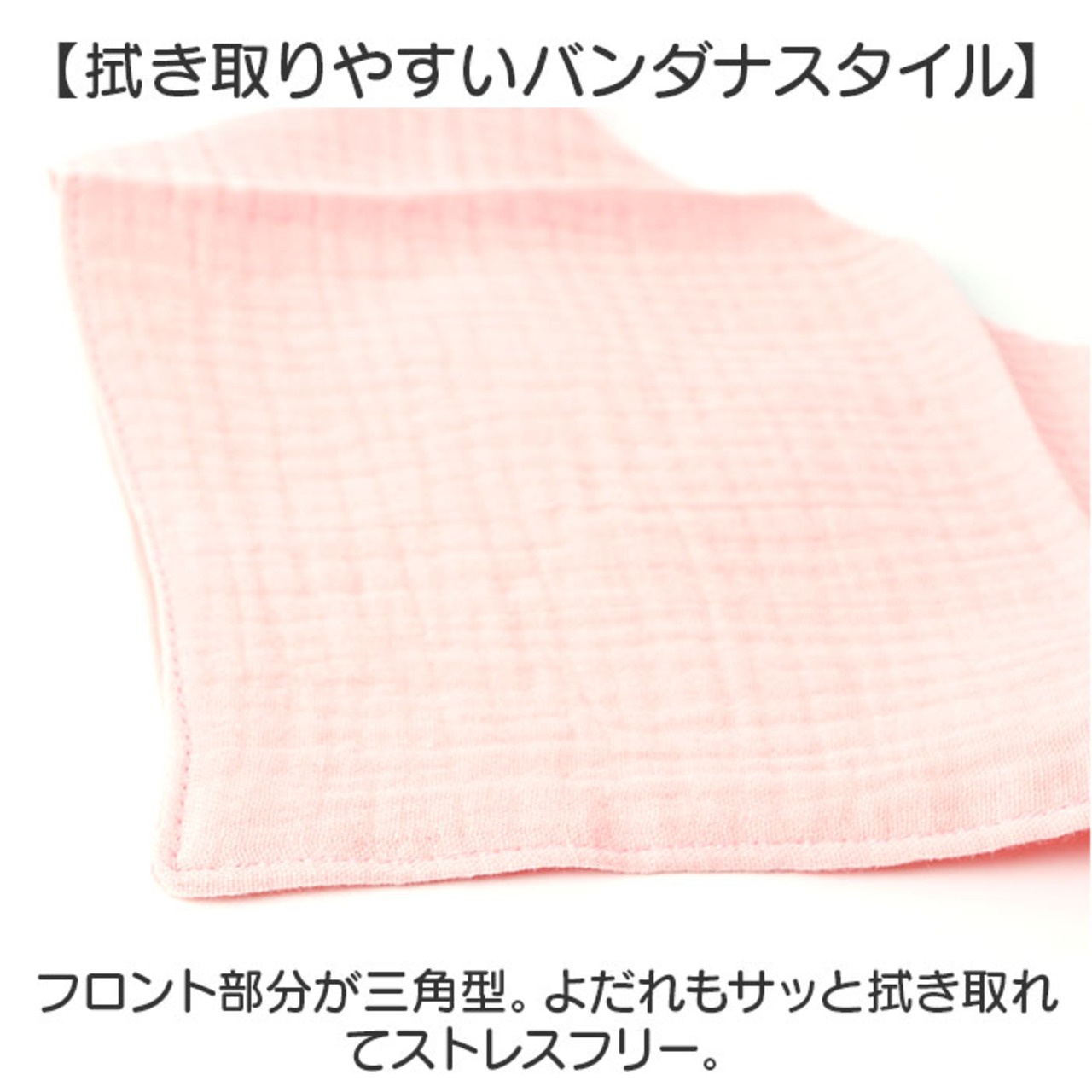 ・フロント部分が三角型。よだれもサッと拭き取れてストレスフリー。