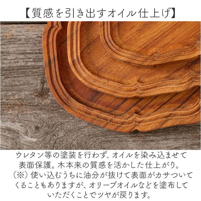 ・ナチュラルなチーク材を使用。繊細なリムのレリーフが美しい木目を際立たせ、グッとおしゃれに。