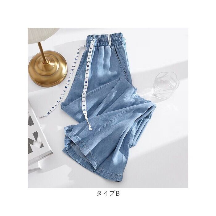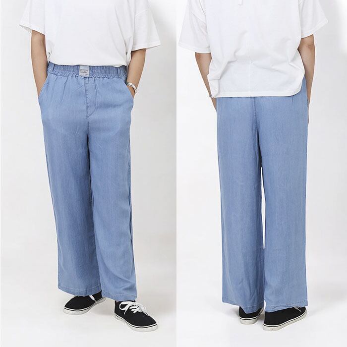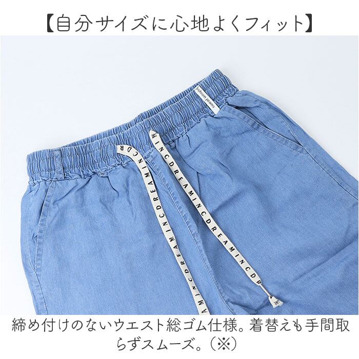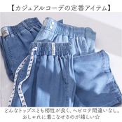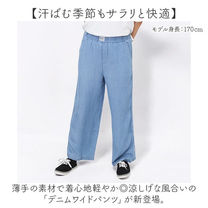 デニム ワイドパンツ レディース 通販 デニムワイドパンツ ワイドデニムパンツ デニムパンツ ジーンズ ジーパン イージーパンツ バギーパンツ ズボン 長ズボン パンツ 薄手 薄い ワイド ウエストゴム 体型カバー ゆったり 涼しい 清涼感 ボトムス 夏