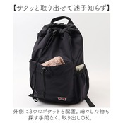 ・開閉に手間取らないドローコードタイプ。開口部を絞れば、中身の飛び出しもガード。