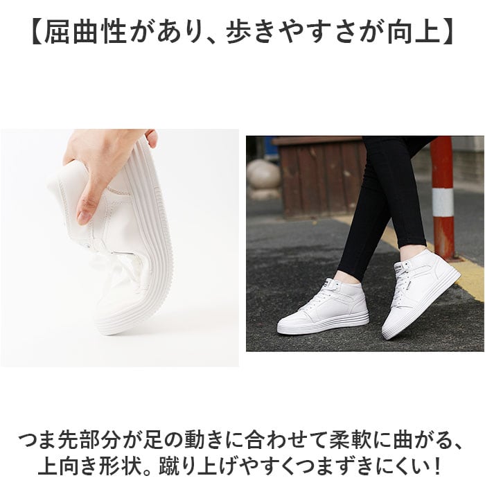 ・身長を盛りつつ、前後差を抑えることで安定した歩行をサポート。底面に凹凸を施し滑りにくい◎