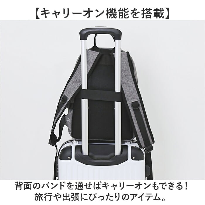 ・背面のバンドを通せばキャリーオンもできる!旅行や出張にぴったりのアイテム。