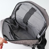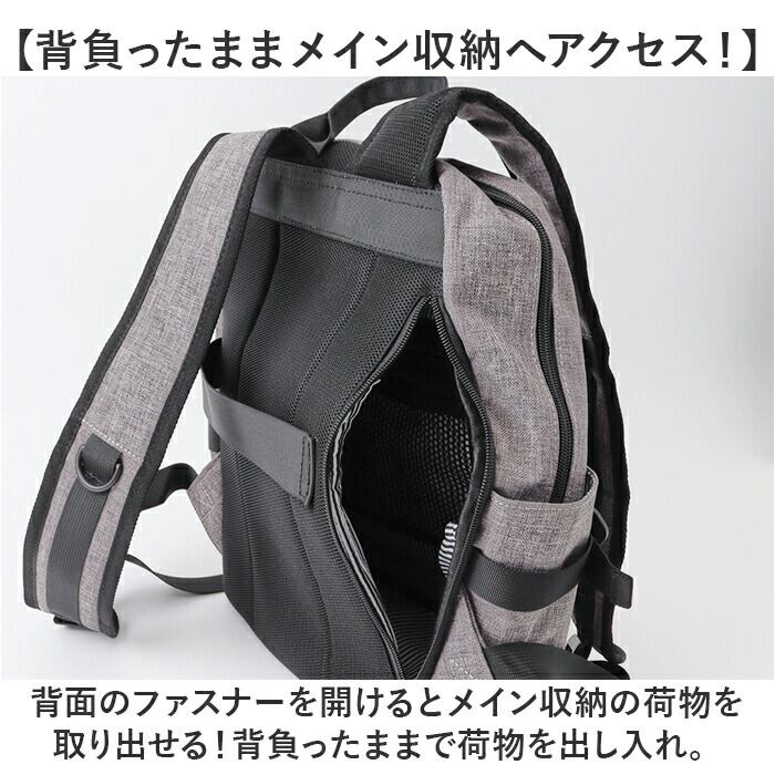 ・背面のファスナーを開けるとメイン収納の荷物を取り出せる!背負ったままで荷物を出し入れ。