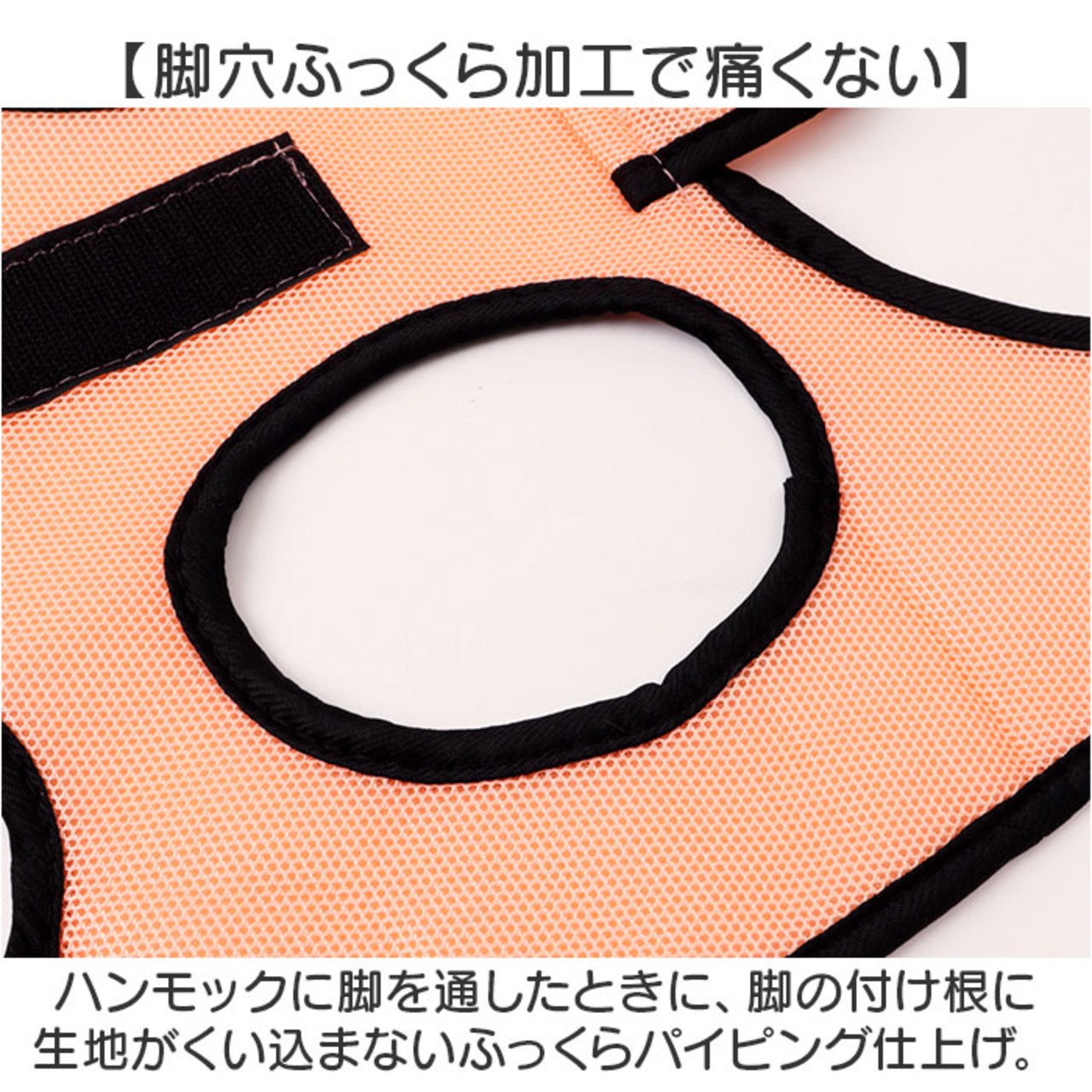 ・ハンモックに脚を通したときに、脚の付け根に生地がくい込まないふっくらパイピング仕上げ。
