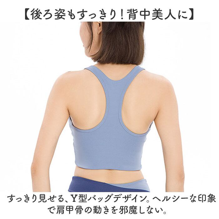 ・すっきり見せる、Y型バッグデザイン。ヘルシーな印象で肩甲骨の動きを邪魔しない。