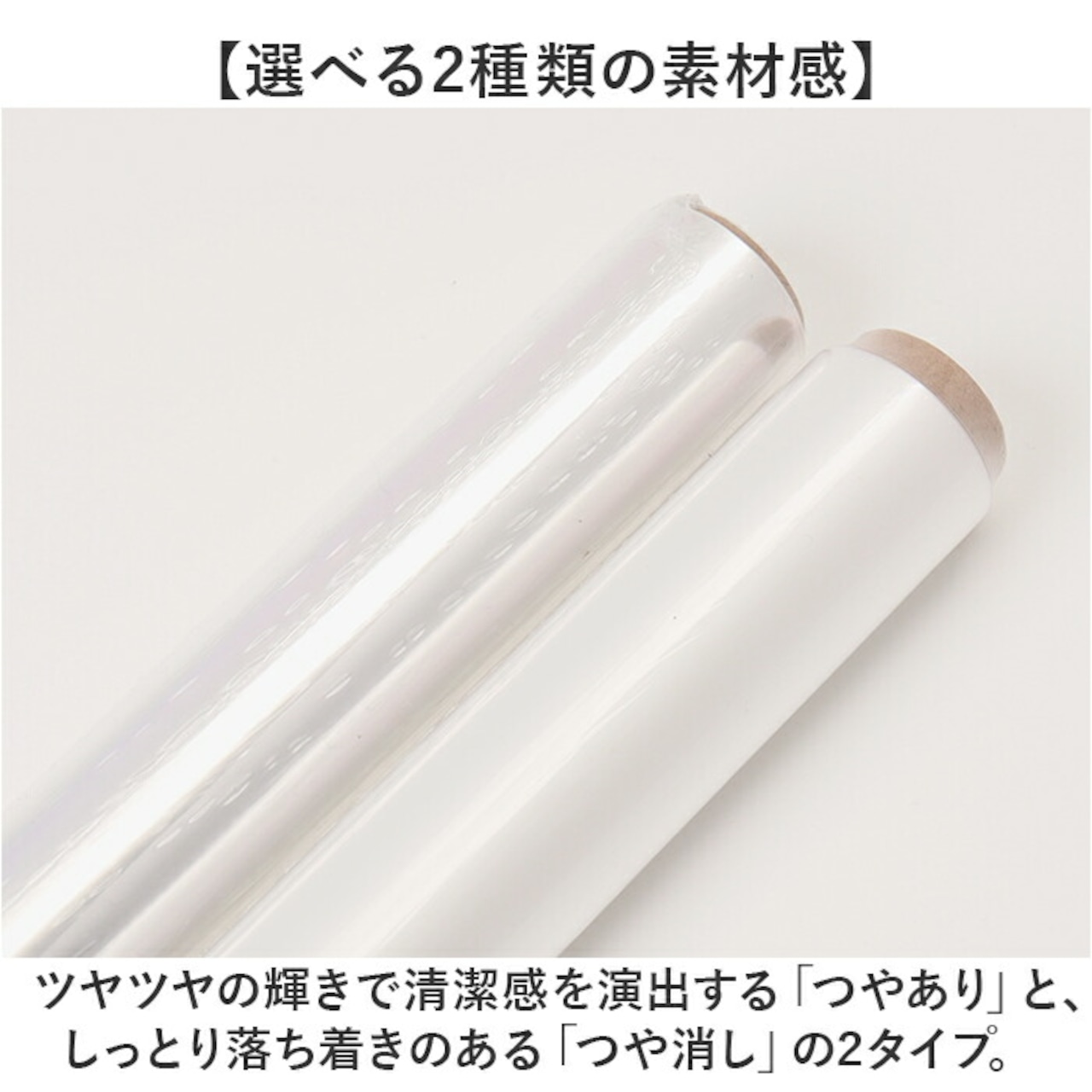 ・ツヤツヤの輝きで清潔感を演出する「つやあり」と、しっとり落ち着きのある「つや消し」の2タイプ。