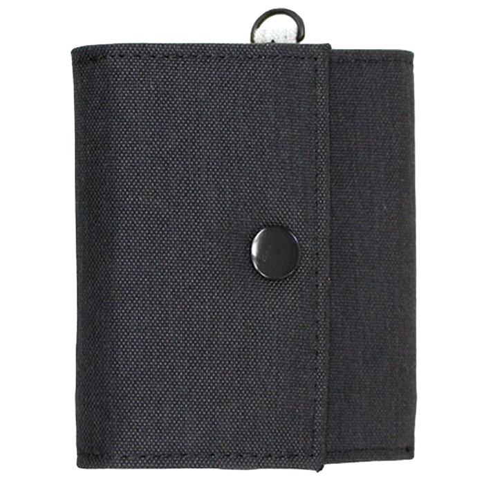 ・スナップボタン式のフラップを左右に開くシンプルな3つ折り構造で、広げても片手に馴染むサイズ感。