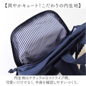 ・内生地はナチュラルなストライプ柄。可愛いだけでなく、中身を確認しやすいつくり。