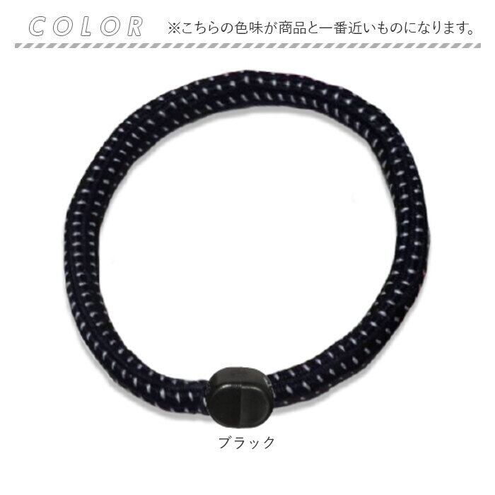 ・伸縮性の高い落ち着いたカラーのゴムに、明るい色彩の糸を緻密に編み込んだユニセックスデザイン。