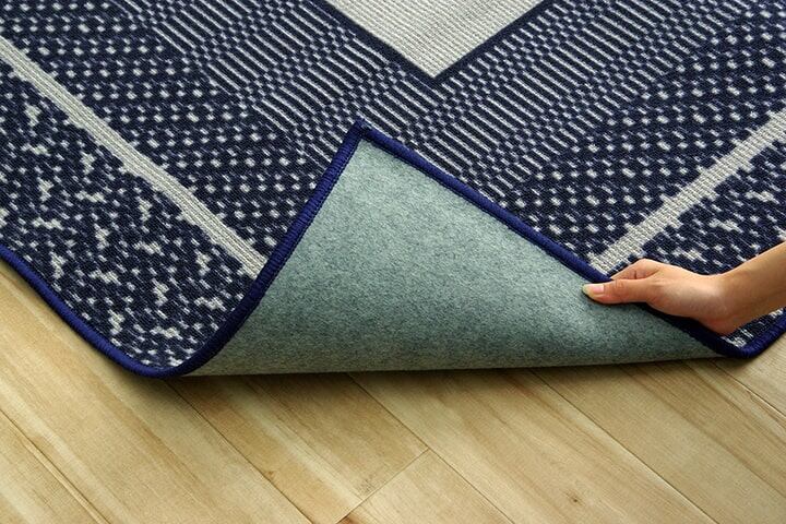 ・汚れや傷から大事な床を守る、撥水加工付きのダイニングラグ。丈夫でへたりにくいナイロン素材を使用しております。