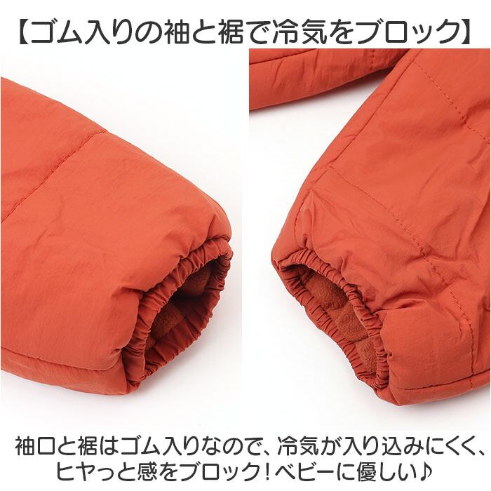 ・袖口と裾はゴム入りなので、冷気が入り込みにくく、ヒヤっと感をブロック!ベビーに優しい♪