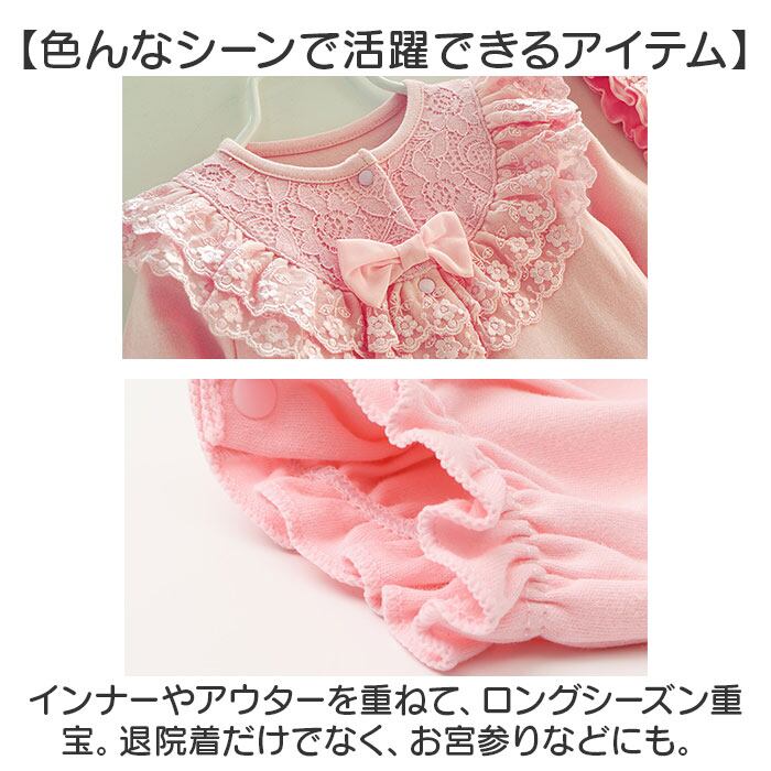 ・インナーやアウターを重ねて、ロングシーズン重宝。退院着だけでなく、お宮参りなどにも。