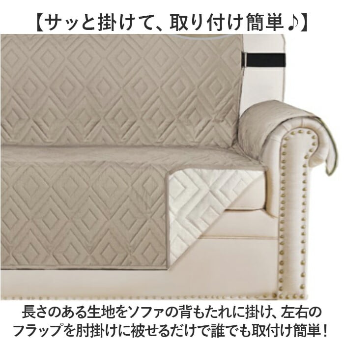 ・柔らかなキルティング素材で、手軽にお部屋を模様替え!「2人掛け用 肘掛け付きソファーカバー」