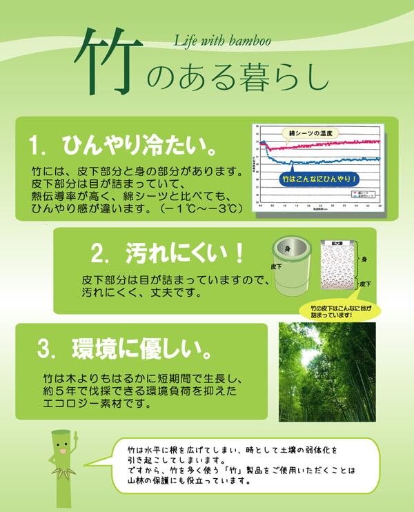 ・竹は他の木材と比べると格段に成長が早く(3〜5年で成竹)、持続的生産が可能な環境に優しいサスティナブルな素材です。