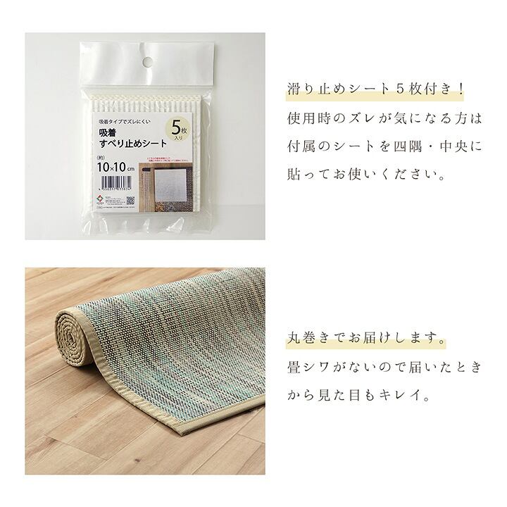 ・吸着滑り止めシート5枚付属しています。裏面に貼れば床面にピタっと吸着します。