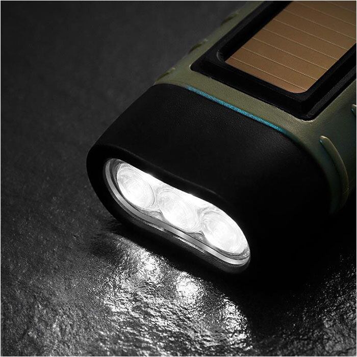 ・電池切れや電池交換が不要の、ソーラーパネルと手動クランクがついた便利アイテム。