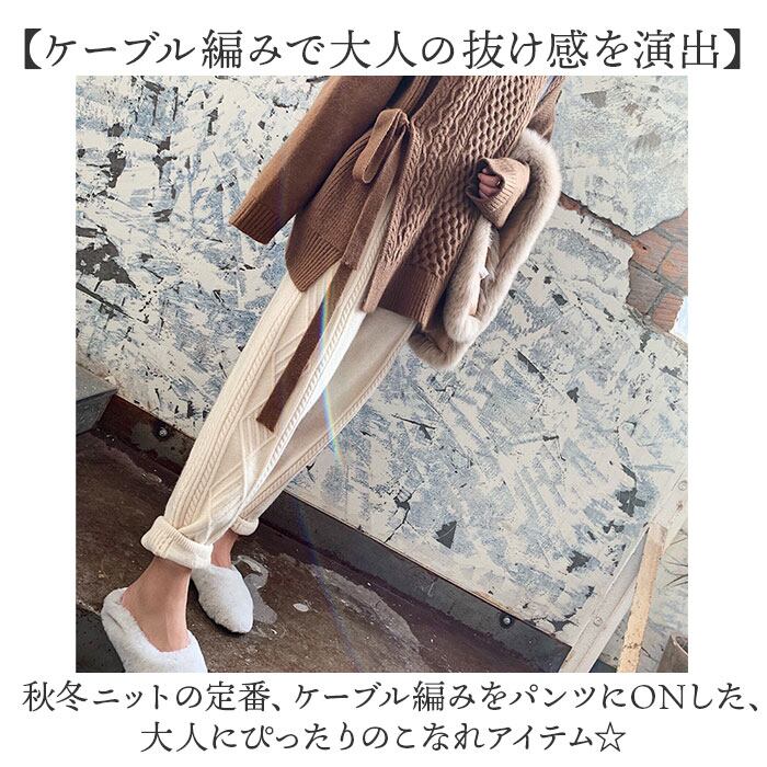 ・秋冬ニットの定番、ケーブル編みをパンツにONした、大人にぴったりのこなれアイテム☆