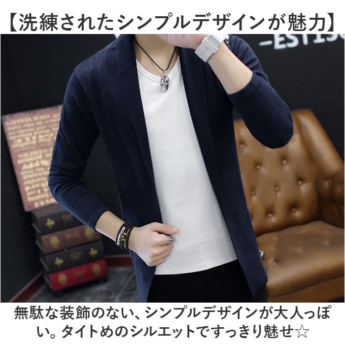 ・フォーマルからカジュアルまでマッチする、メンズ ロングニットジャケットが登場。