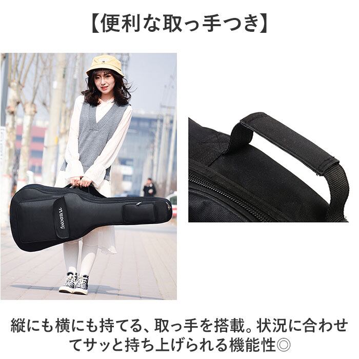 ・リュックタイプなので、大きいギターも簡単に持ち運び!両手が空くから他の荷物を持つことも◎