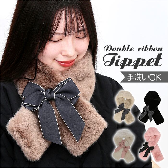 ・首元ポカポカ♪優しく包みこんで、おしゃれのワンポイントになる「ダブルリボンティペット」。