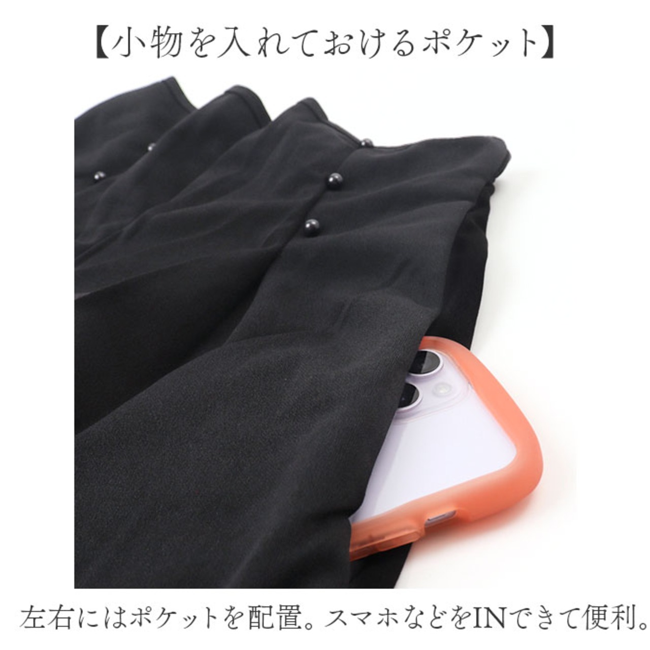 ・トップスインしても着ぶくれ感のないバックゴム。フロントのボタンデザインもアクセント。