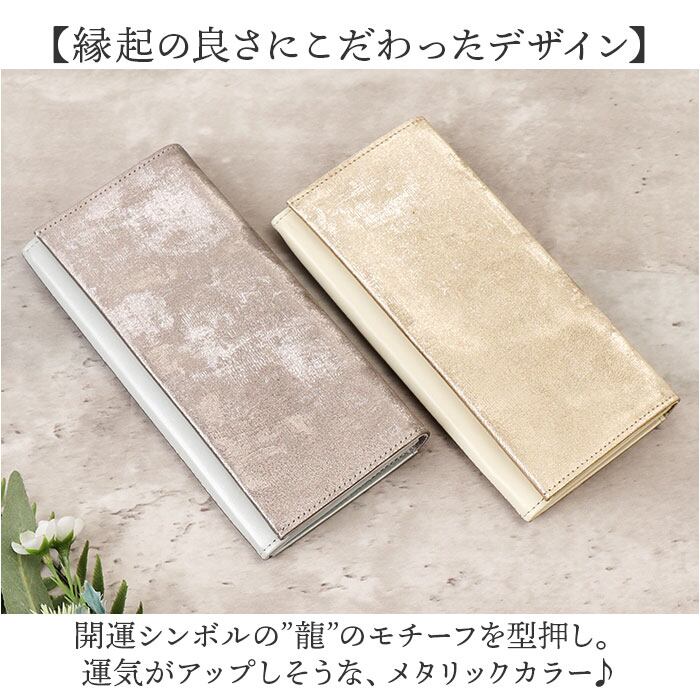・開運シンボルの”龍”のモチーフを型押し。運気がアップしそうな、メタリックカラー♪