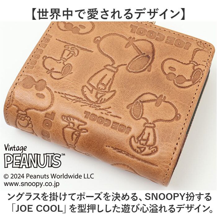 ・世界中から愛されるPEANUTSアートを大人の革小物にアレンジ。サングラスを掛けてポーズを決める、SNOOPY扮する「JOE COOL」を型押しした遊び心溢れるデザイン。