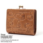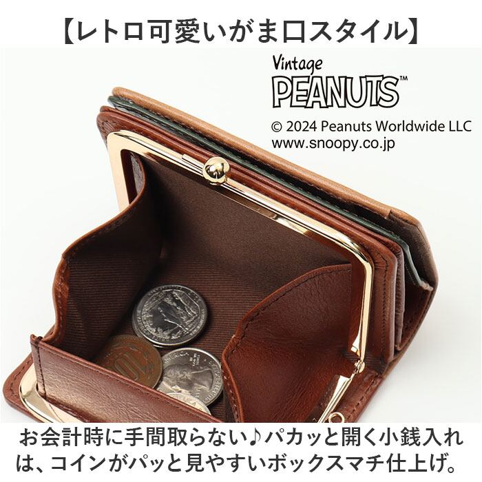 ・鏡面のように煌めくゴールド色のがま口金具、内側にさりげなく刻印したVintage PEANUTSのロゴがアクセント。