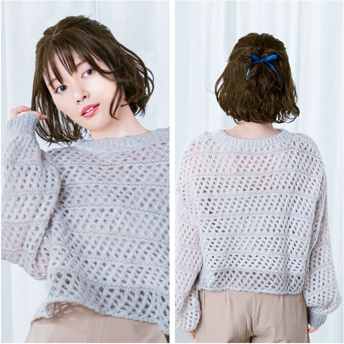 ・自毛をまとめるネットが1つ付属。ネットを使うことで、凹凸のないキレイなシルエットに。