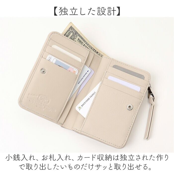・小銭入れは大きく開くL字型のファスナー構造。現金やカードのやり取りがスマートに。