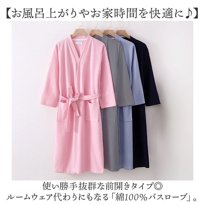 ・使い勝手抜群な前開きタイプ◎ルームウェア代わりにもなる「綿100%バスローブ」。