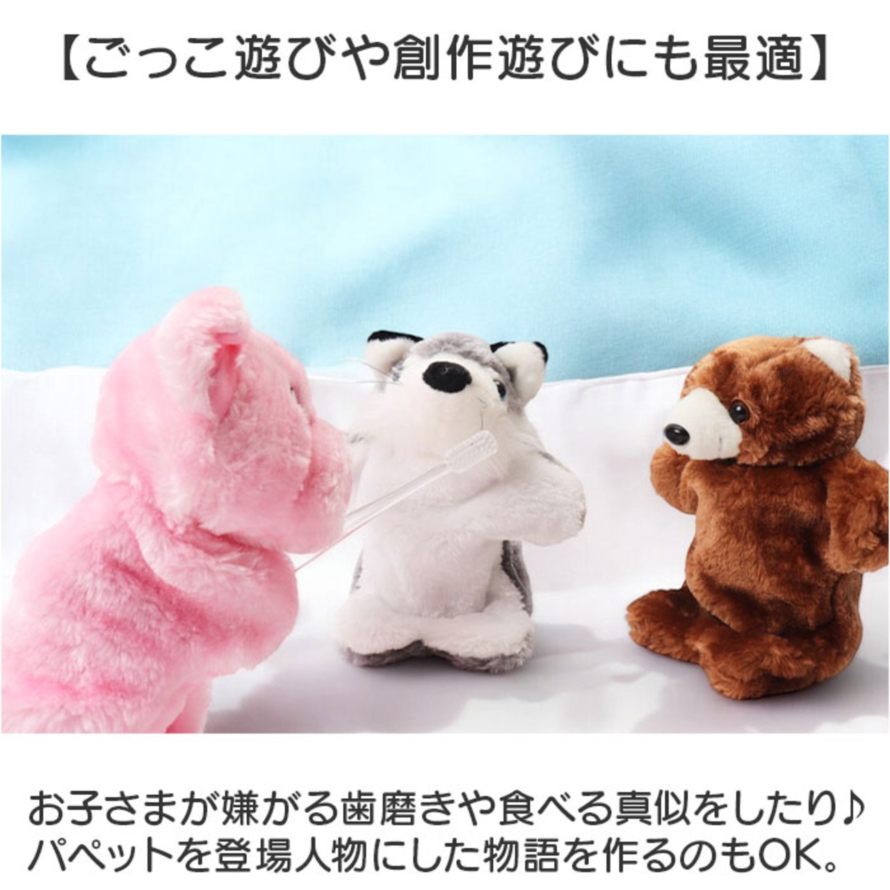 ・愛らしい姿に、お子さまも大喜び♪遊び方いろいろ「アニマル パペットぬいぐるみ2点セット」