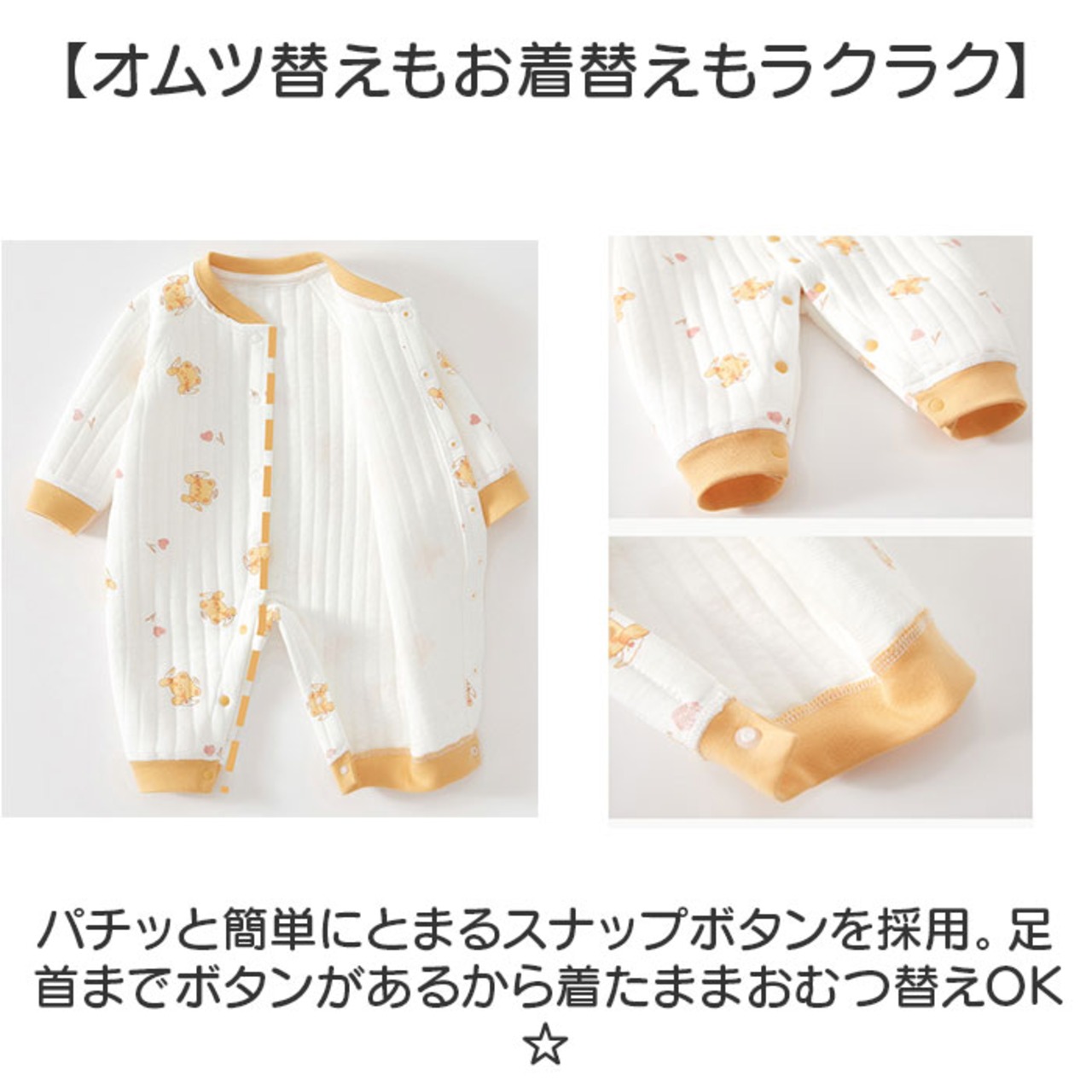 ・パチッと簡単にとまるスナップボタンを採用。足首までボタンがあるから着たままおむつ替えOK☆