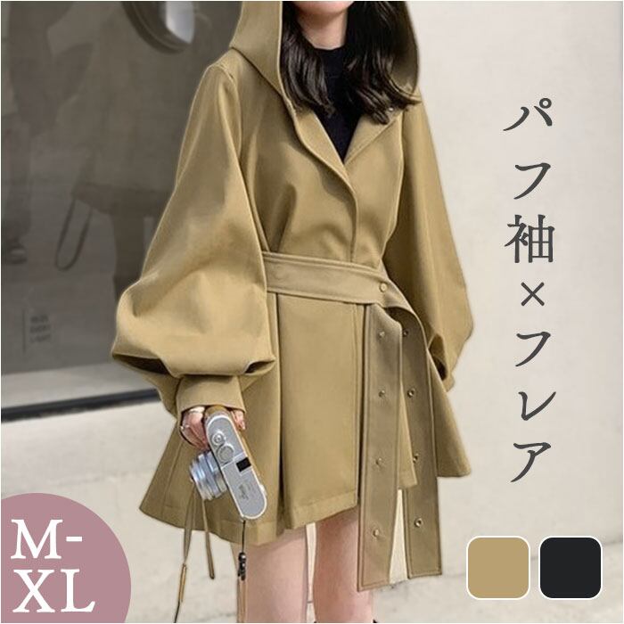 ・ベルトでキュッとフレアシルエットに「フード付き カジュアルアウター」が登場。