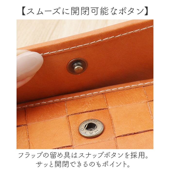 ・フラップの留め具はスナップボタンを採用。サッと開閉できるのもポイント。