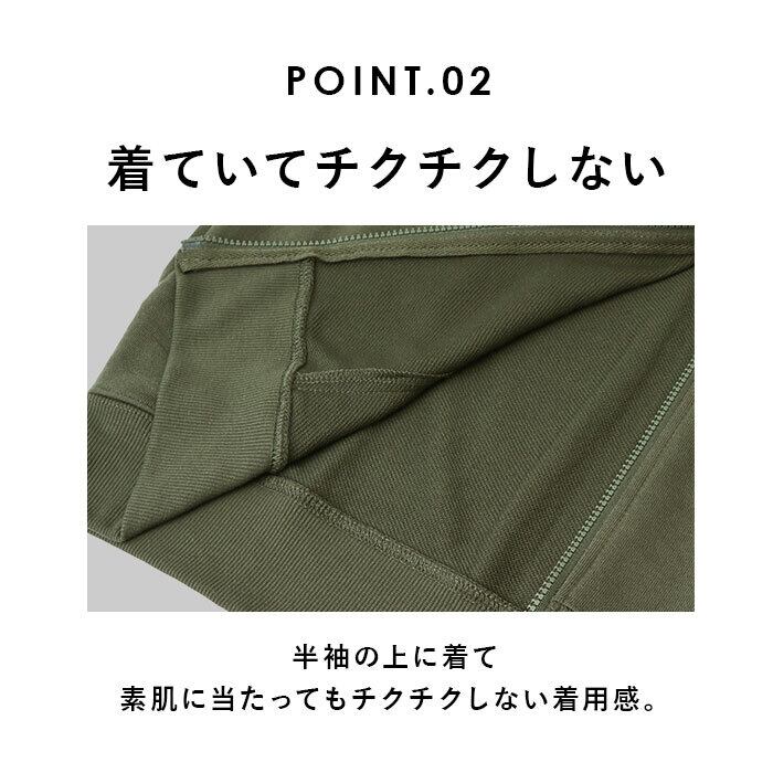 ・厚すぎない生地なので、コートやジャンパーなどアウターの下に着こんでも着ぶくれ感少なめ!