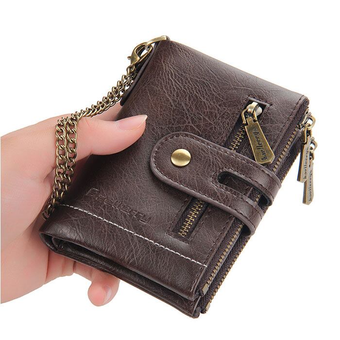 財布 メンズ 三つ折り 大容量 通販 三つ折り財布 三つ折財布 折り財布 折りたたみ財布 折り畳み財布 サイフ ウォレット チェーン チェーン付き 小銭入れ お札入れ カード入れ PUレザー 多機能 収納 小銭 コイン お札 カード 紳士 かっこいい