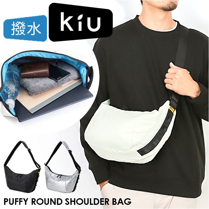 kiu ショルダーバッグ キウ K392 通販 ショルダーバック ショルダー バッグ 斜めがけバッグ パフィーラウンドショルダーバッグ 大きめ レディース メンズ 軽量 軽い 撥水 背面ポケット アウトドア フェス おしゃれ シンプル オシャレ 男女兼用バッグ