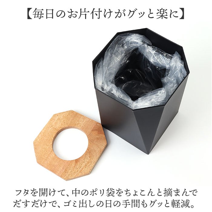 ・フタを開けて、中のポリ袋をちょこんと摘まんでだすだけで、ゴミ出しの日の手間もグッと軽減。