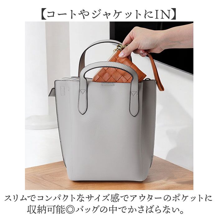 ・カードポケットを設け、身分証やクレカなど日ごろ使うカードをスマートに持ち運び。