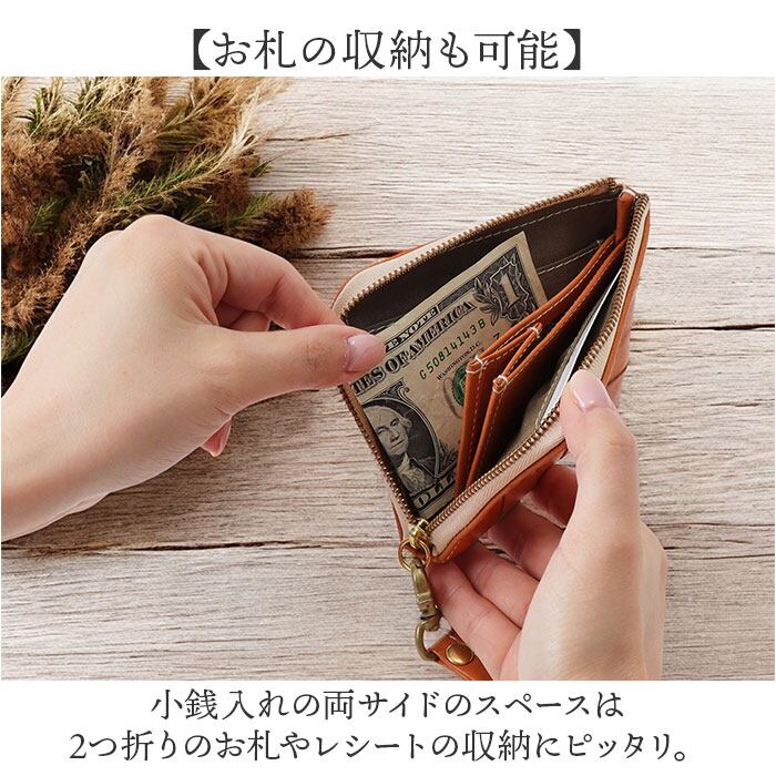 ・小銭入れの両サイドのスペースは2つ折りのお札やレシートの収納にピッタリ。